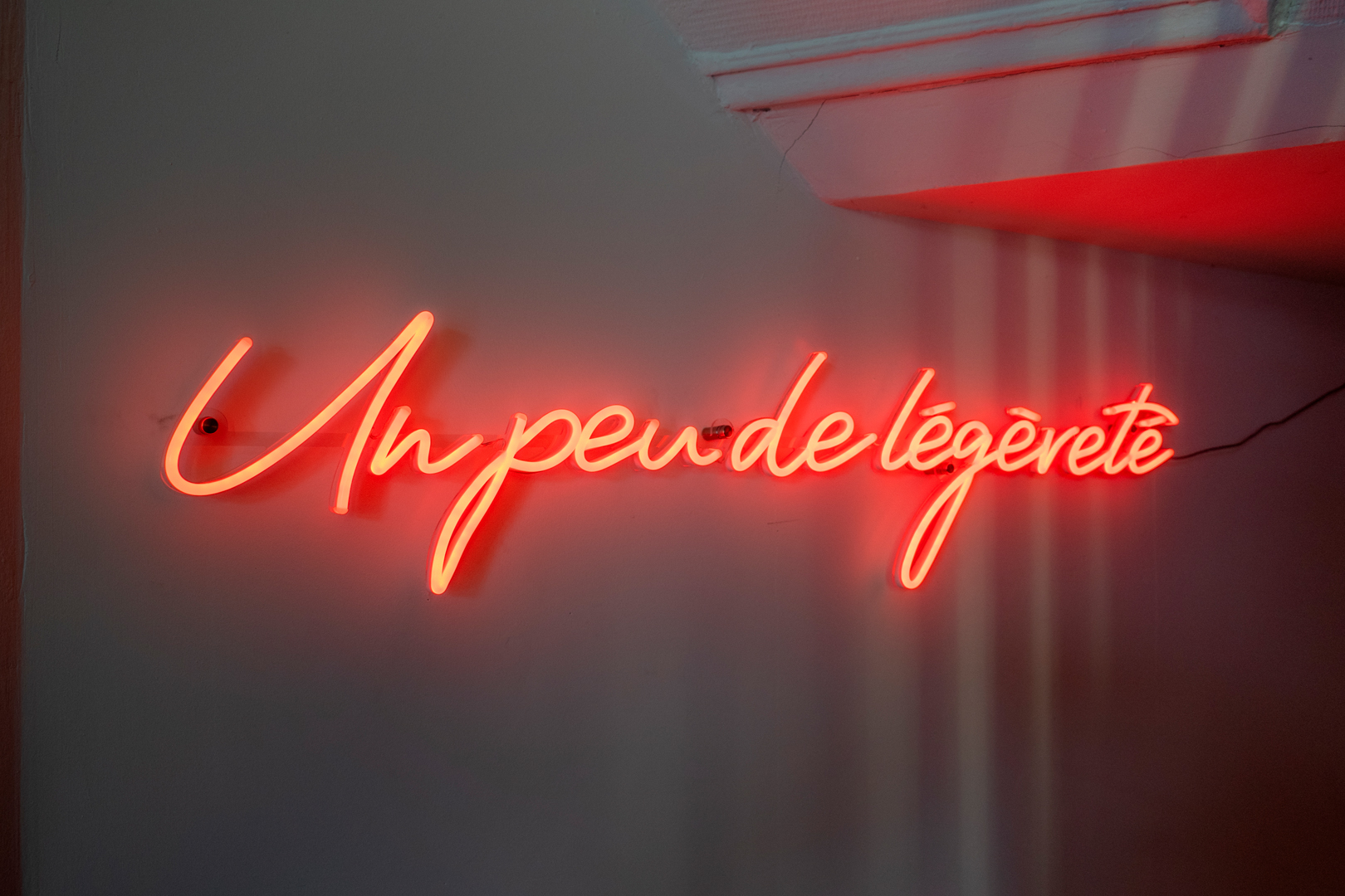A gauche de l’entrée, en lettre magnétiques : “rose je t’adore“.