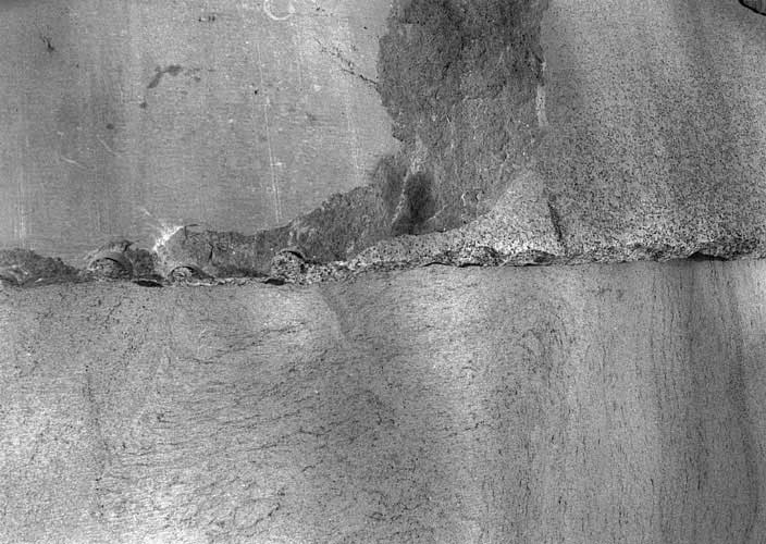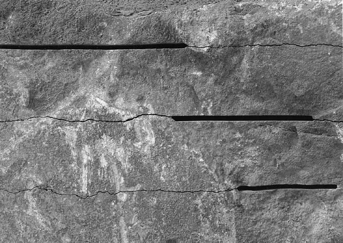 Il fixe pour nous les stigmates des temps immémoriaux, le travail du gel, de la sécheresse, de l'eau, de l'usure de la matière.